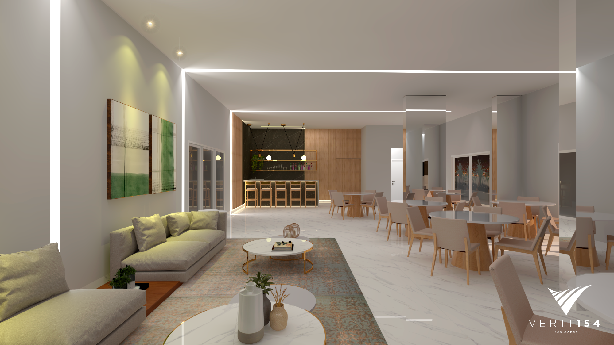 Salão de festas amplo totalmente mobiliado.